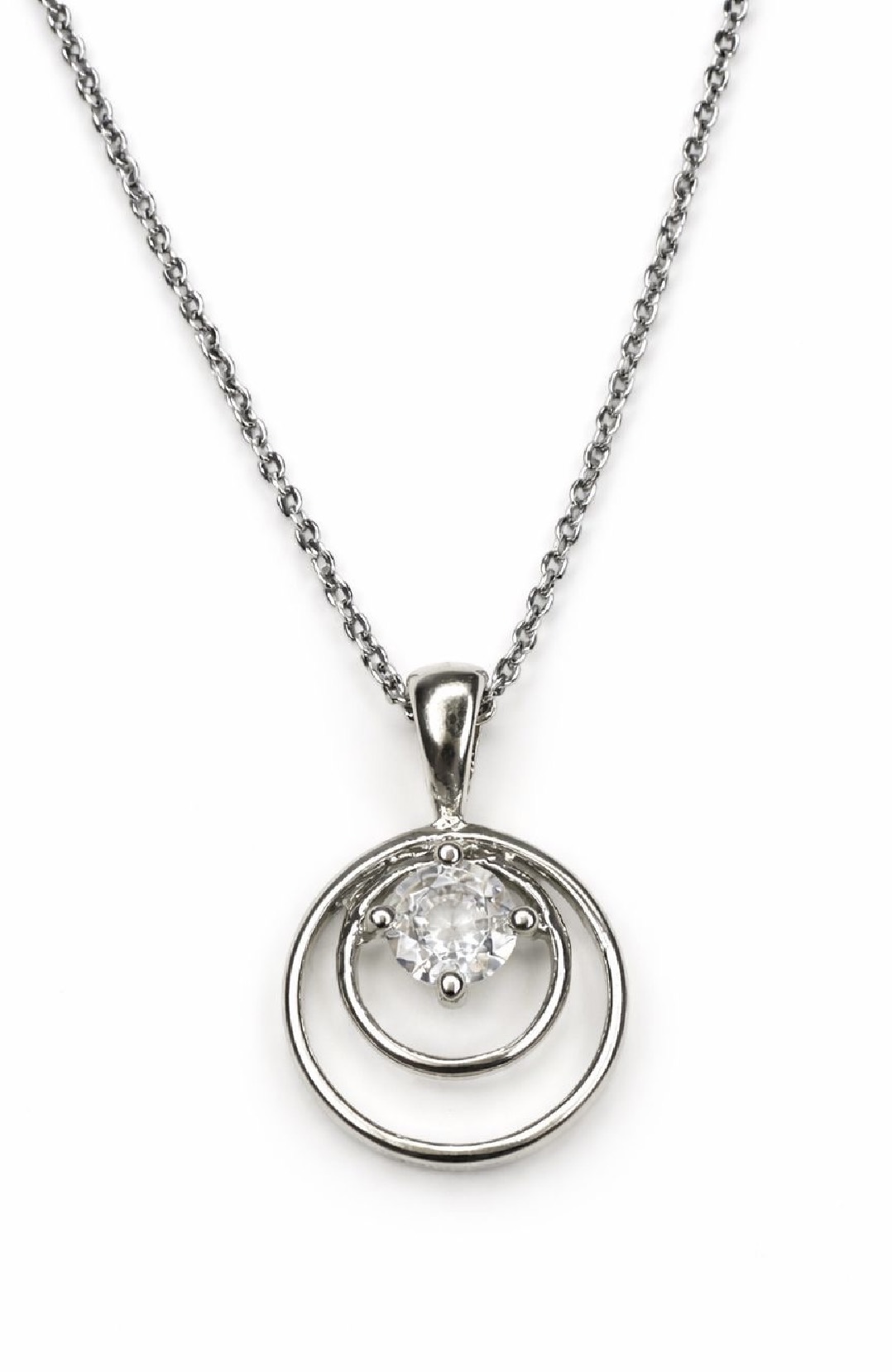 Minimalism meets celestial inspiration in the Eternal Orbit Pendant. This striking piece features a brilliant-cut solitaire crystal suspended within two interlocking halos of polished silver. The dual-circle frame creates a modern, architectural silhouette that draws the eye directly to the shimmering centerpiece.