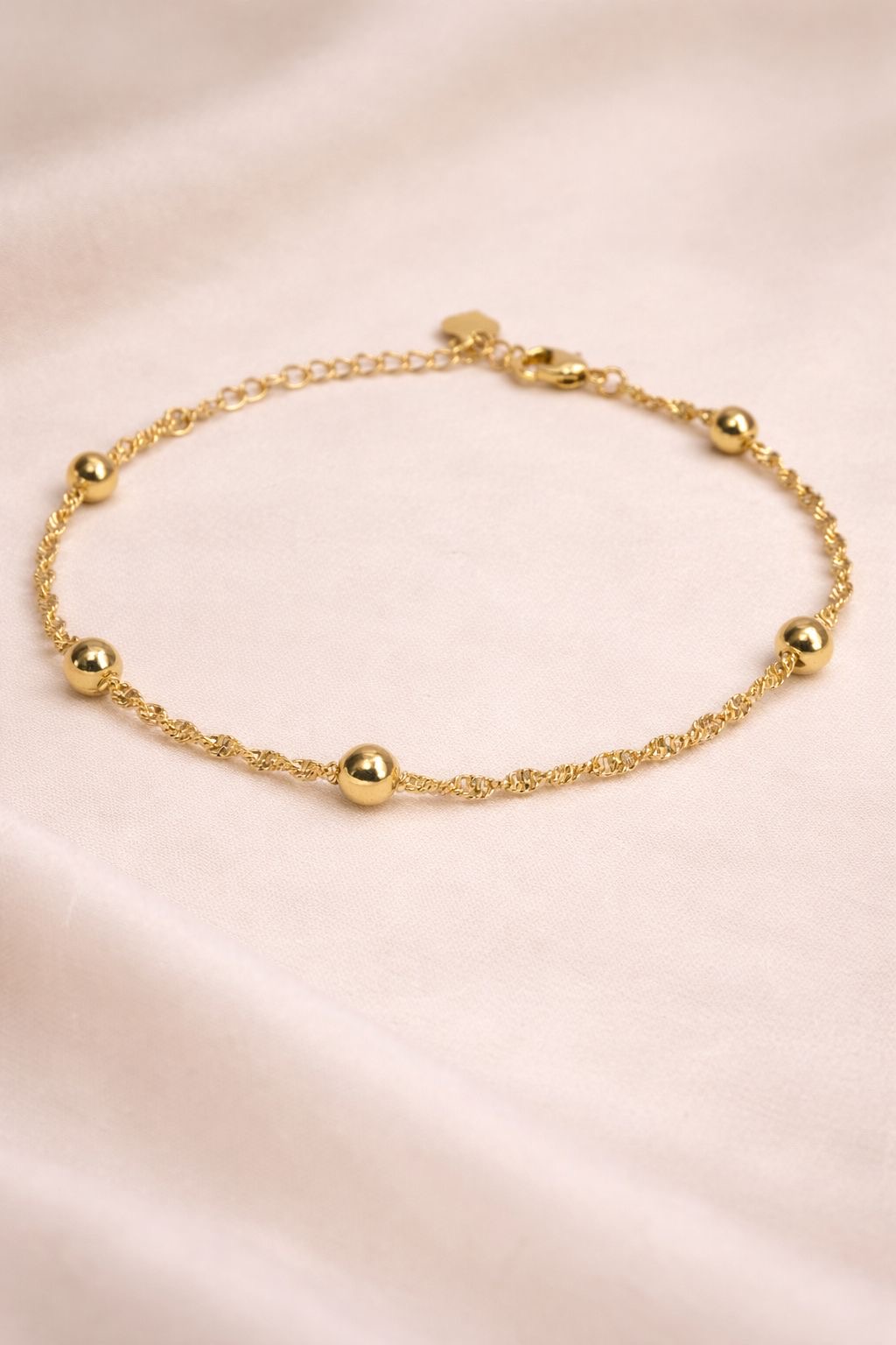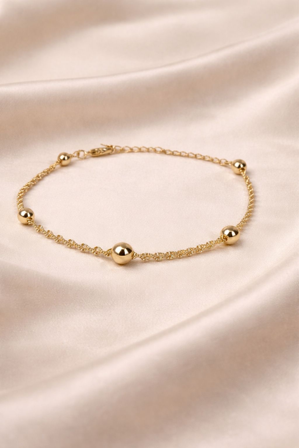 Elevate your daily ensemble with a touch of radiant texture. Crafted with a meticulous twisted rope design, this piece captures and reflects light from every angle. Five perfectly polished gold-toned spheres are spaced evenly along the chain, providing a balanced, rhythmic aesthetic that feels both contemporary and vintage-inspired.